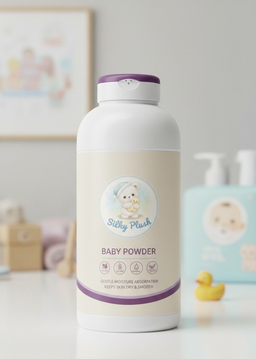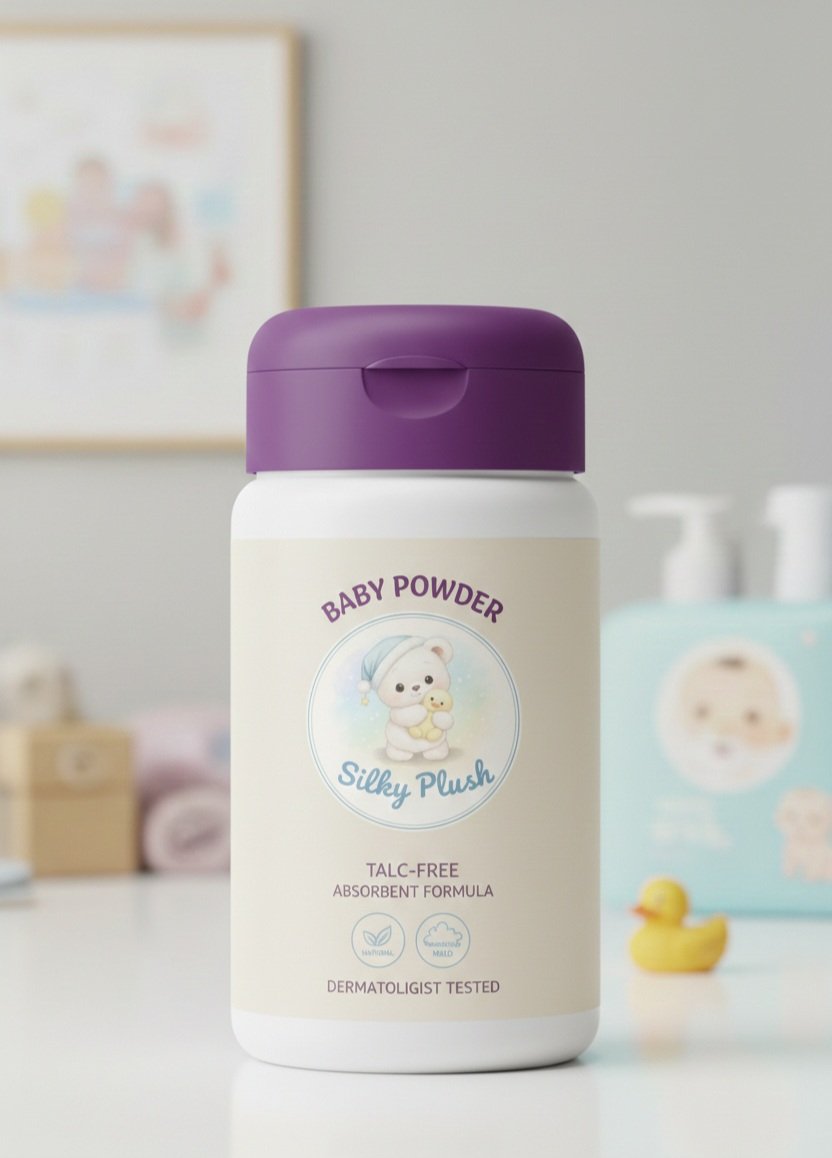 Silky Plush ComfortShield™ baby powder absorbs moisture naturally, keeping baby skin dry, smooth, and protected.